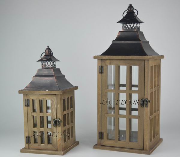 Set of 2 wood lanterns